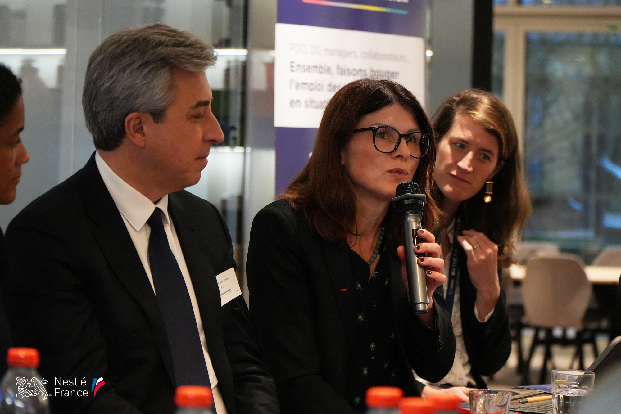 Le 7e Café des Dirigeants Engagés s’est tenu jeudi 19 décembre 2024 à l’invitation du Manifeste Inclusion et de Muriel Lienau, Présidente de Nestlé France. Une quarantaine de dirigeants, tous signataires du Manifeste Inclusion, représentant des entreprises telles que BNP Paribas, TotalEnergies, L’Oréal, Microsoft, Armonia, Accenture, Elior, Parfums Christian Dior, et bien d’autres, ont échangé à l’Académie Nespresso sur les enjeux et actions en faveur de l’emploi des personnes en situation de handicap. Cet événement a également été marqué par la présence de deux ministres : Madame Astrid Panosyan-Bouvet, Ministre du Travail et de l’Emploi, et Madame Charlotte Parmentier-Lecocq, Ministre déléguée chargée des Personnes Handicapées.