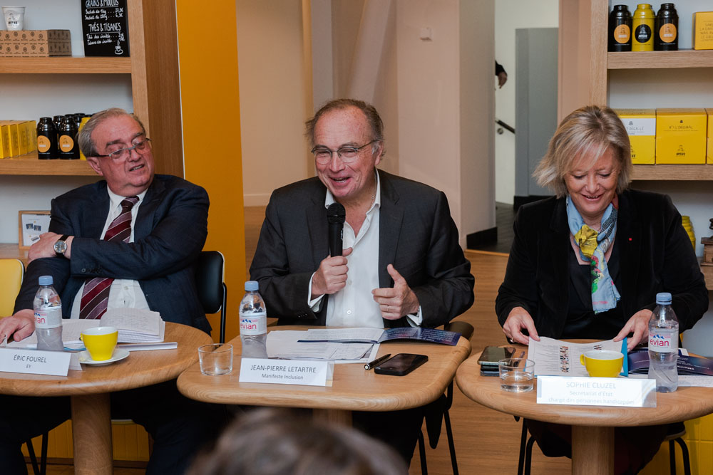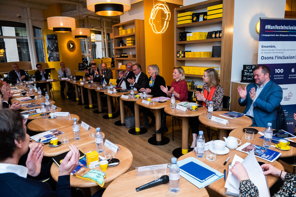 Le 15 mars s’est tenu le 2e Café des dirigeants engagés au Café Joyeux, en présence de Sophie Cluzel, Secrétaire d’Etat auprès du Premier ministre en charge des personnes en situation de handicap. Une vingtaine de président(e)s ont répondu présents à l’invitation de Christian Sanchez et Jean-Pierre Letartre, co-présidents du Manifeste Inclusion.